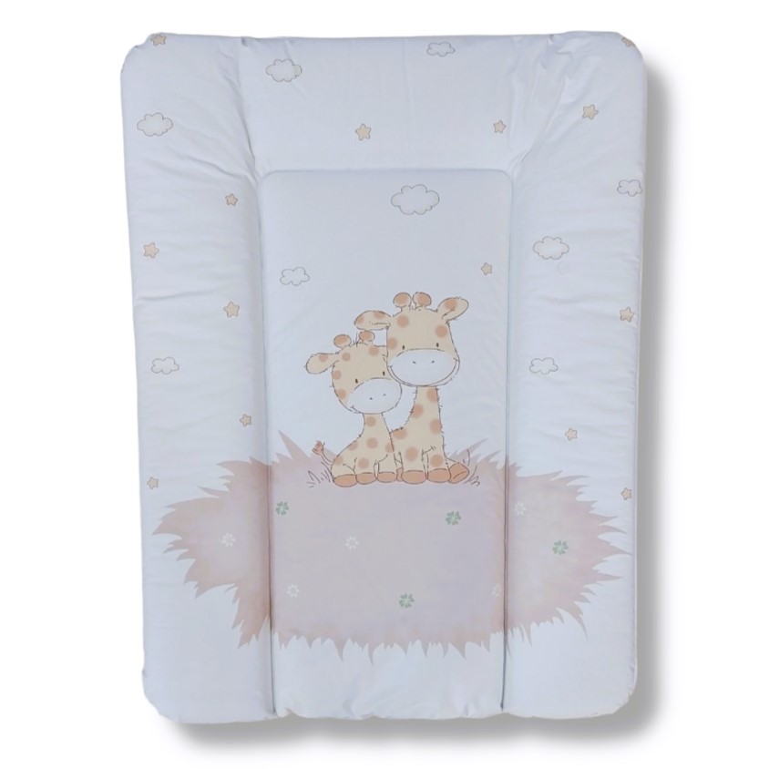Αλλαξιέρα μαλακή μπεζ με καμηλοπάρδαλη διαστάσεων 50x70x8 κατασκευασμένη από μαλακό pvc κατάλληλη για πολυμορφικές κούνιες αλλά και για κάθε χρήση, καθαρίζετε εύκολα με υγρό ύφασμα η υγρό μαντηλάκι