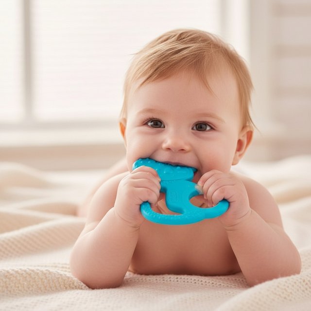 Μασητικό οδοντοφυΐας μπλε σε σχήμα αρκούδος . Το βρεφικό μασητικό είναι ειδικά σχεδιασμένο για να ανακουφίζουν τα ερεθισμένα βρεφικά ούλα. Καταπραΰνουν άμεσα όλα τα μέρη της γνάθου, απαλύνοντας τον πόνο της οδοντοφυΐας για μεγάλο χρονικό διάστημα. Το εύκαμπτο σχήμα του ανακουφίζει αποτελεσματικά το μωρό από τις πιέσεις στη στοματική κοιλότητα. Κατασκευάζετε από προηγμένη σιλικόνη ένα υλικό, ασφαλές χωρίς Bisphenol-A και ανοξείδωτο ατσάλι .