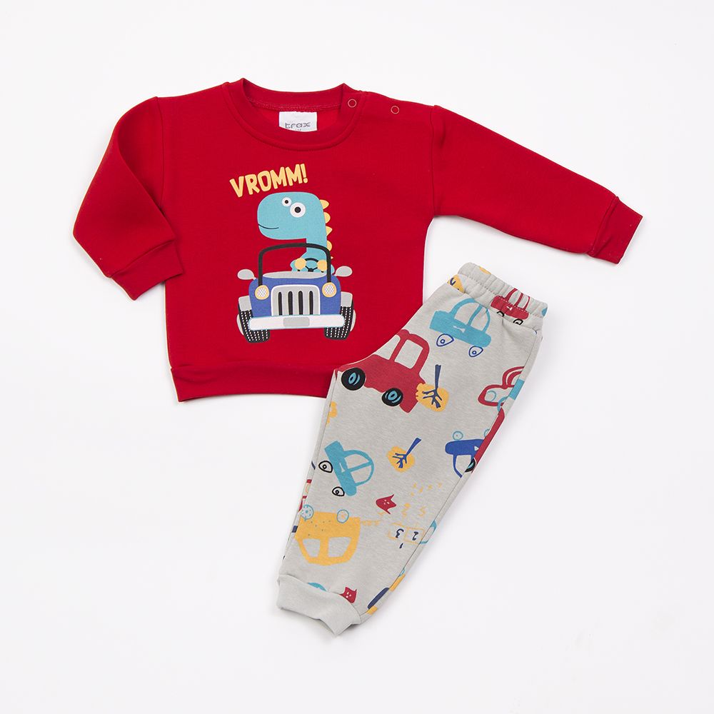 trax t-shirt with stamp and trousers red cat