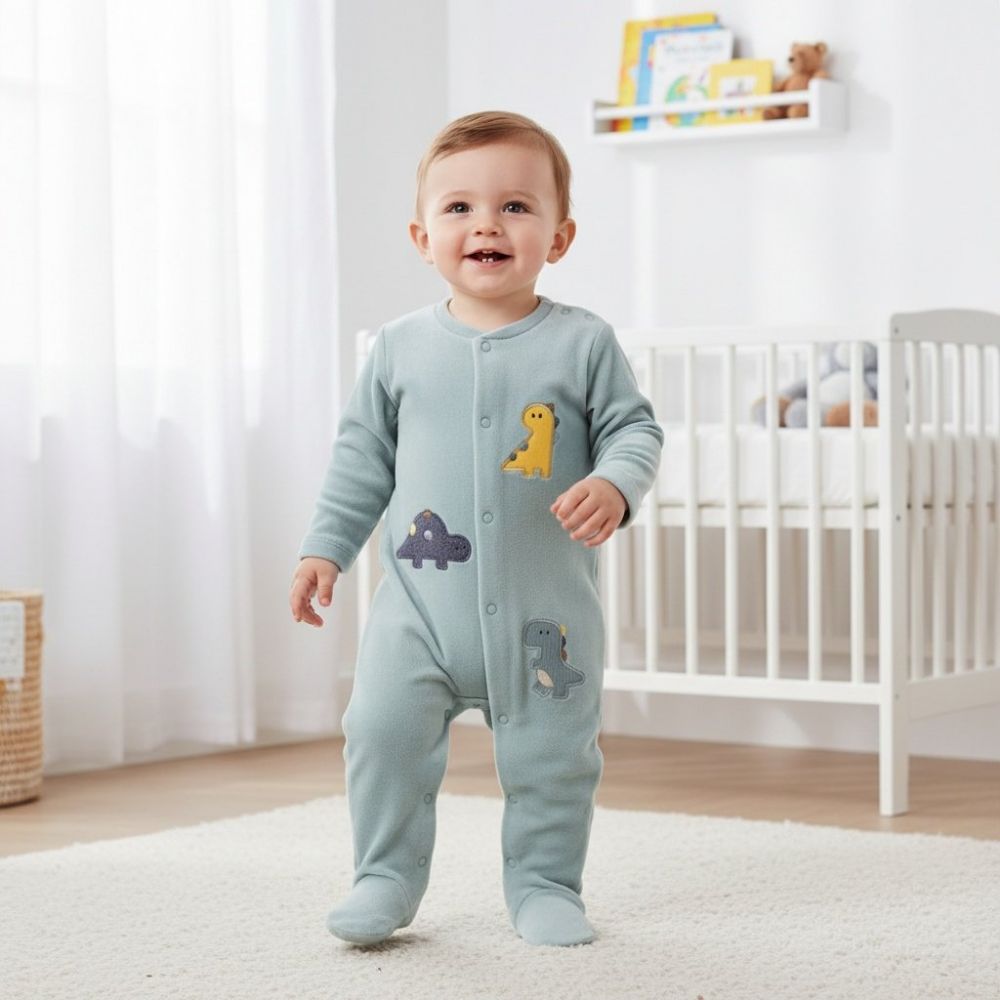 Mint Velvet Onesie with Lovely Flower Embroideries for Girls