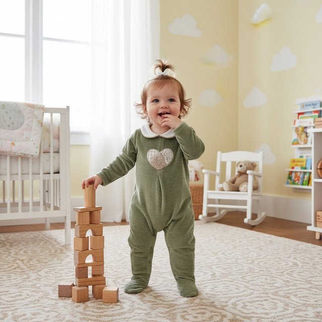 Mint Velvet Onesie with Lovely Flower Embroideries for Girls