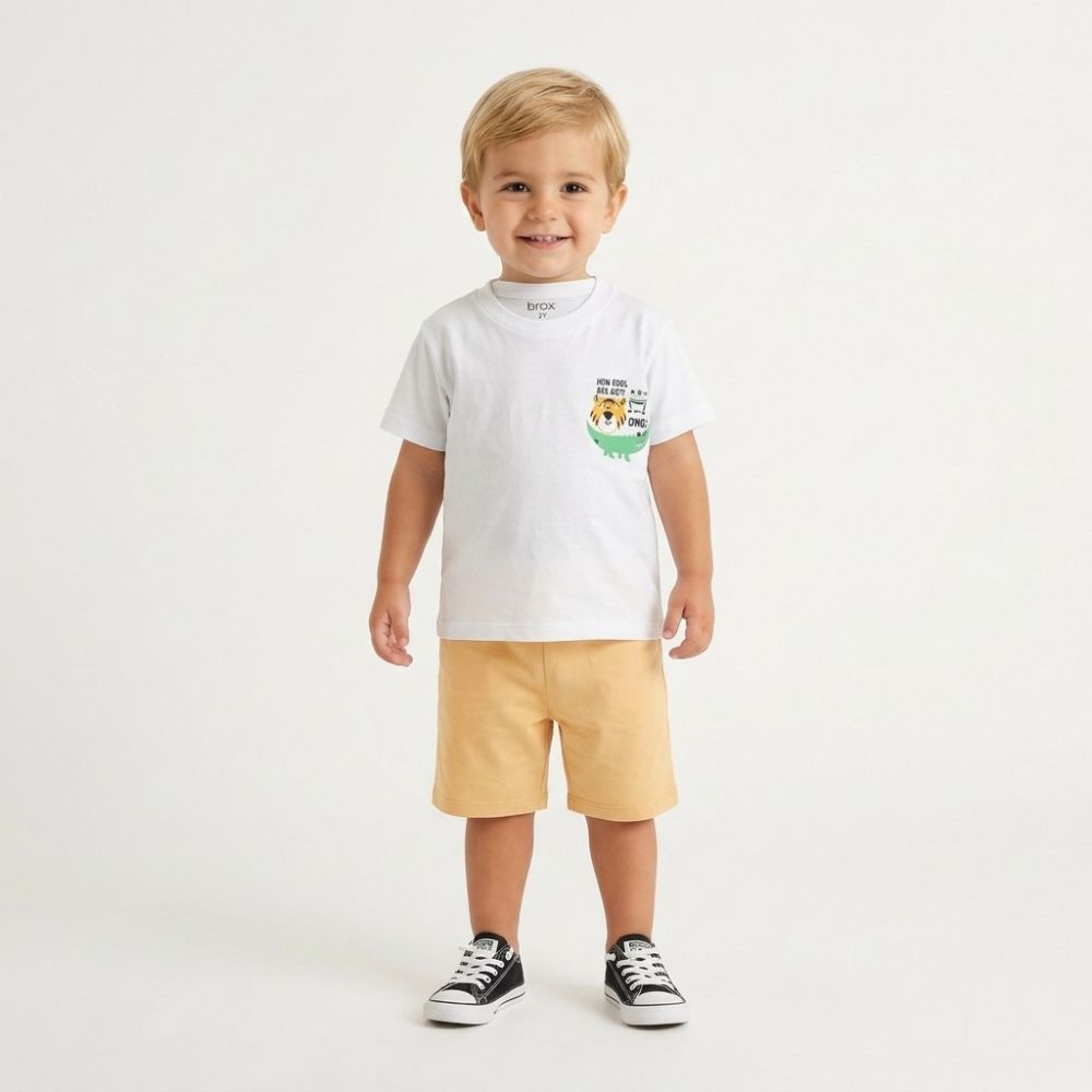 Patterned t-shirt white with soft red short trax