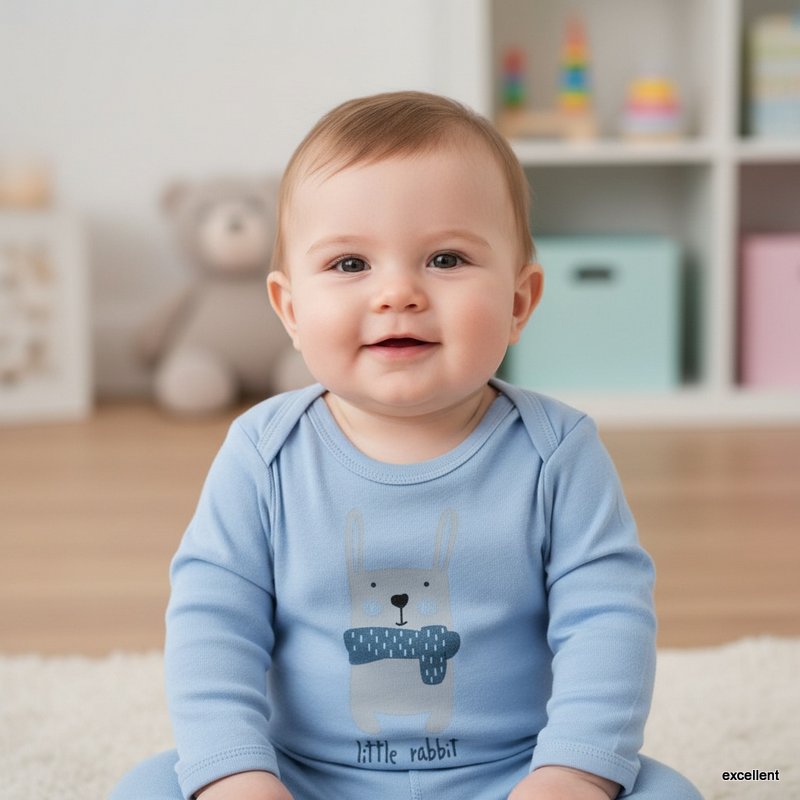 This excellent long-sleeved, open leg cotton bodysuit whith stamp a bears is ideal for keeping your baby comfortable. You'll love the stretchy envelope neck for easy dressing and the convenient press studs in the gusset, making nappy changes fuss free.