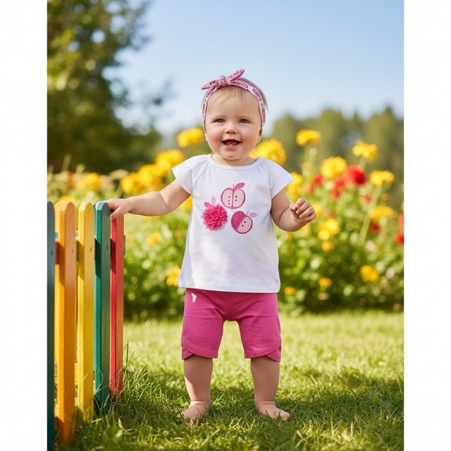 Set for your little princess at excellent.gr! This adorable baby clothing set combines style and comfort, offering a sweet and cute look for any occasion. It consists of a white t-shirt with a cute fuchsia flower, a fuchsia capri, and a matching hair band for a complete look. Made of soft and comfortable fabrics, this set is ideal for babies' sensitive skin. Give your baby style and comfort with this cheerful and playful set