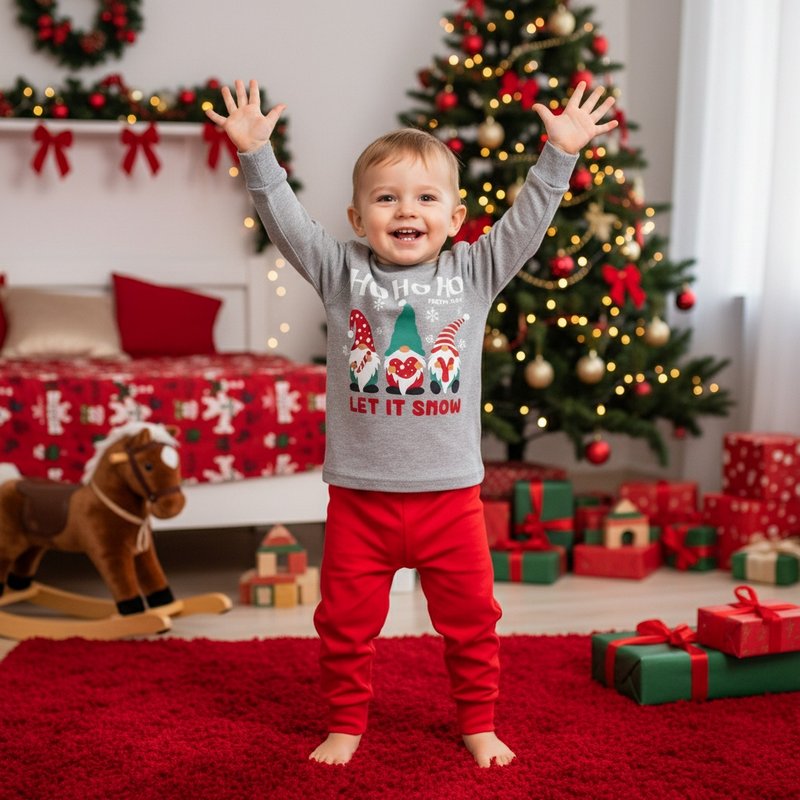 The children's pyjamas in cream colour with red pants and cute hearts are the perfect choice for little princesses! Made from 100% cotton stretch fabric, this pajama provides ultimate comfort and warmth during cold winter nights. The pajamas consist of a cream-coloured t-shirt with a sweet love bear print that will become their favourite. This pajama is not just a sleepwear, but also a way to feel as comfortable and stylish as possible on cold winter nights.