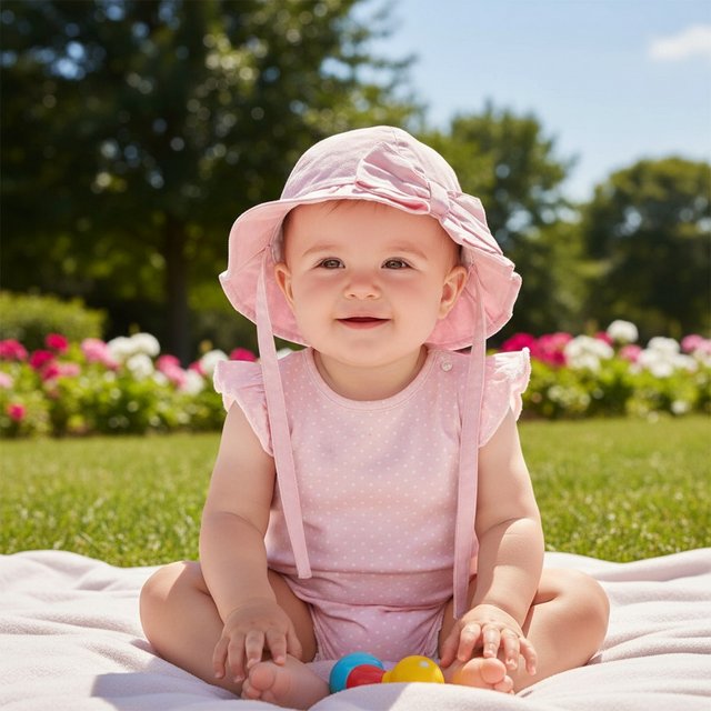 Double-sided baby hat for boy red blue. Comfortable and cool baby beach hat that changes its colors depending on your baby's clothing