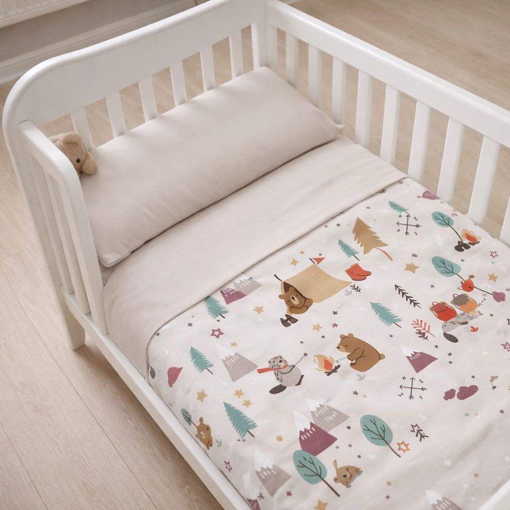 Create a magical and natural world for your baby with the Beige Forest crib sheets with vibrant jungle patterns. The crib sheets, with dimensions of 100x70 and made of 100% cotton fabric, offer the softness and care that your little angel deserves. The set includes 2 sheets, with the fitted sheet featuring a lovely forest design with vibrant jungle animal designs, creating an ideal atmosphere for relaxing and playing, while the fitted sheet is in a soft beige shade. Give your baby the best care and restful sleep, decorating his space with the magic of the jungle.