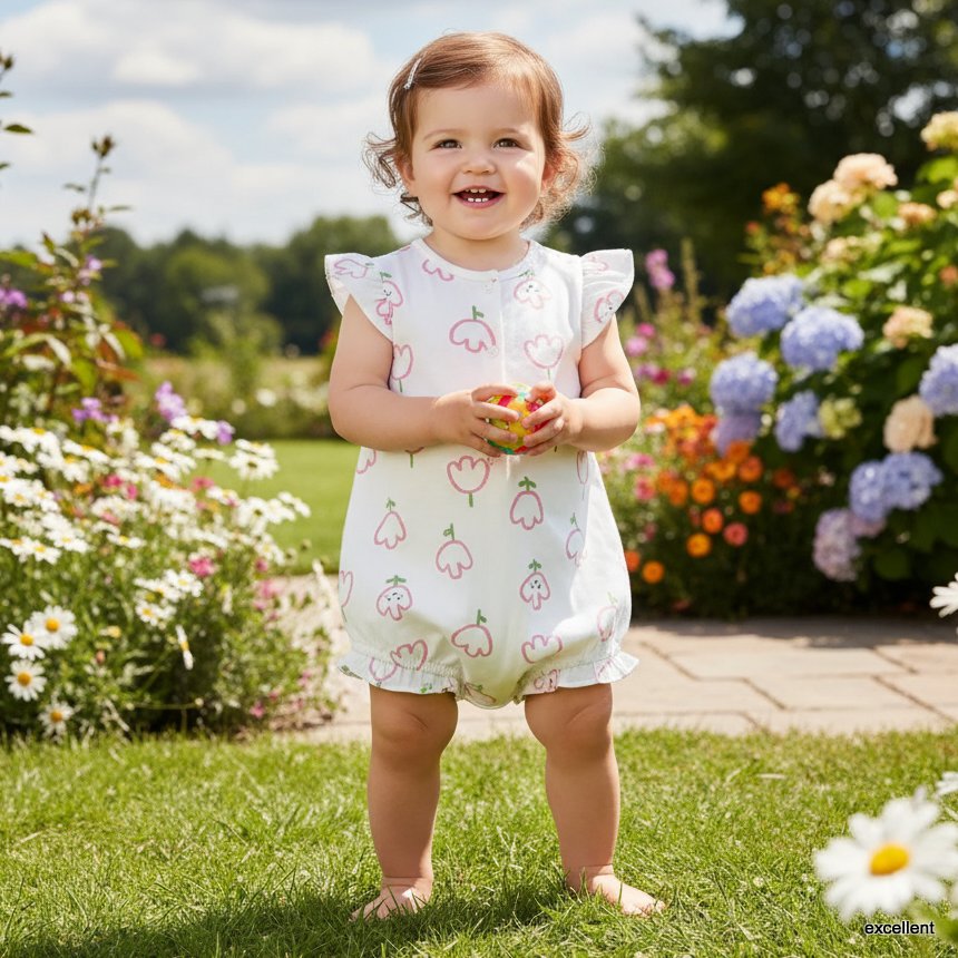For a light and sweet summer look for your little princesses, choose this sleeveless romper made of maco fabric! Made from soft cotton fabric, this onesie offers comfort and flexibility for your little one's summer adventures. The white background with the pink flowers creates a sweet and soft design that will steal hearts. With an opening in the back and crotch, it's easy to change your baby's diaper without effort and hassle.