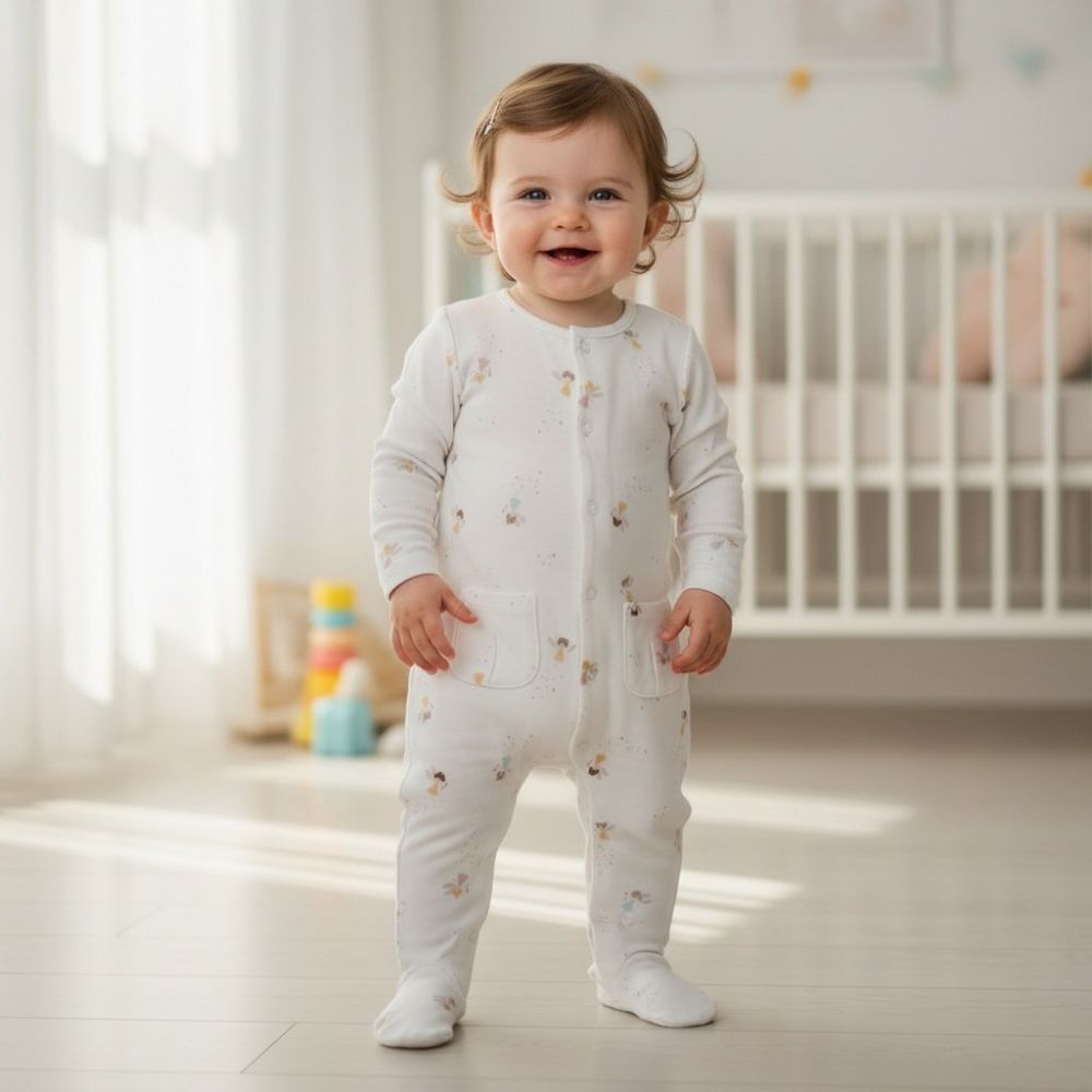 Το βρεφικό φορμάκι-πυτζαμάκι από μακό είναι ιδανικό για τα κοριτσάκια. Έχει ένα γλυκό μοτίβο με μικρές νεραιδες στο μπροστινό μέρος. Ολοκληρωμένο με κλειστά πατουσάκια, αυτό το φορμάκι προσφέρει ζεστασιά και άνεση. Η πρακτική του σχεδίαση με κουμπάκια μεταλλικα εμπρός διευκολύνει το ντύσιμο και την αλλαγή της πάνας.