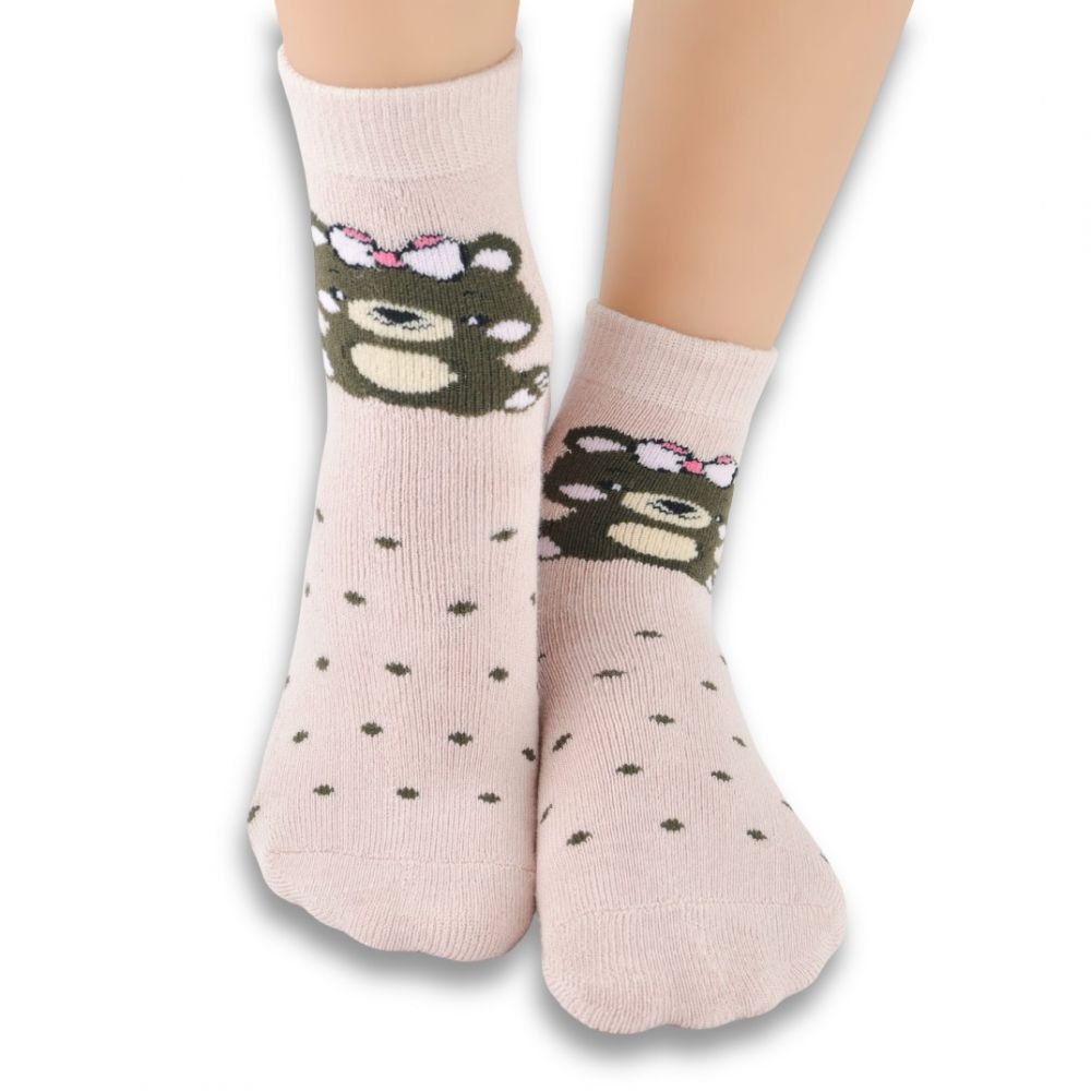 Καλτσάκια Αντιολισθητικά Χοντρά για Κορίτσι Σομόν Αρκουδάκι