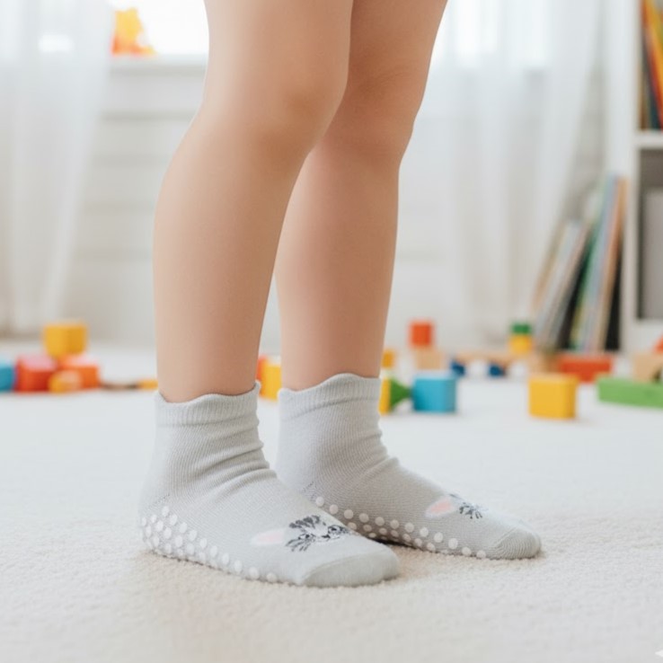 Προσφέρετε στο μωρό σας άνεση και ασφάλεια με αυτά τα χαριτωμένα βρεφικά καλτσάκια σε απαλό γκρι με γατακι. Είναι κατασκευασμένα από μαλακό ύφασμα για να αγκαλιάζουν το ευαίσθητο ποδαράκι και διαθέτουν αντιολισθητικά πατουσάκια σιλικόνης στο πέλμα, εξασφαλίζοντας σταθερότητα και μείωση του κινδύνου γλιστρήματος κατά τα πρώτα βήματα ή το παιχνίδι σε λείες επιφάνειες.