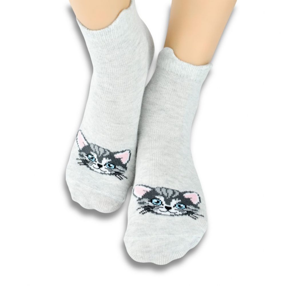 Καλτσάκια Γκρι Γατάκι Με Πατουσάκια Σιλικόνης