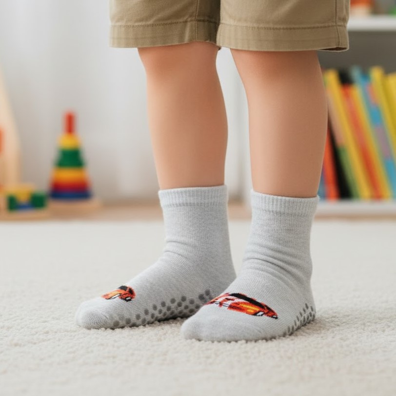 Καλτσάκια Γκρι με Πατουσάκια Σιλικόνης Γκρι Αυτοκίνητο
