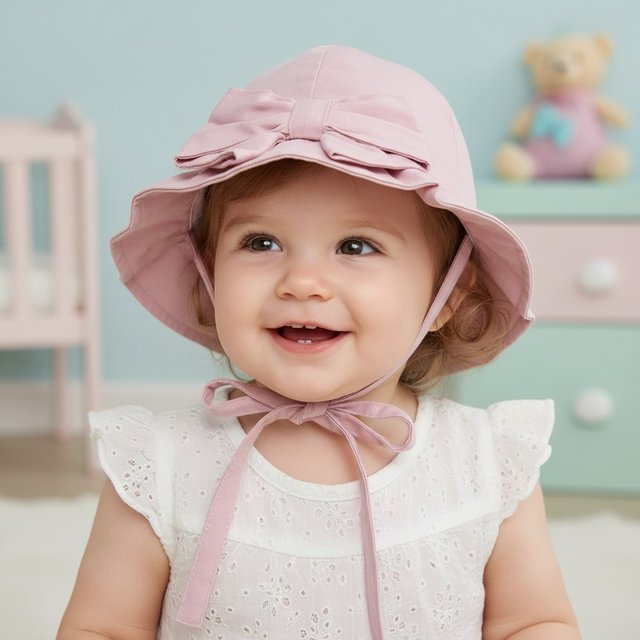 Βρεφικό καπελάκι Το βρεφικό καπέλο είναι με περιμετρικό διπλό βολάν .Το κοριτσίστικο καπελάκι διαθέτει κορδόνια και είναι κατασκευασμένο απο 100% βάμβάκι.