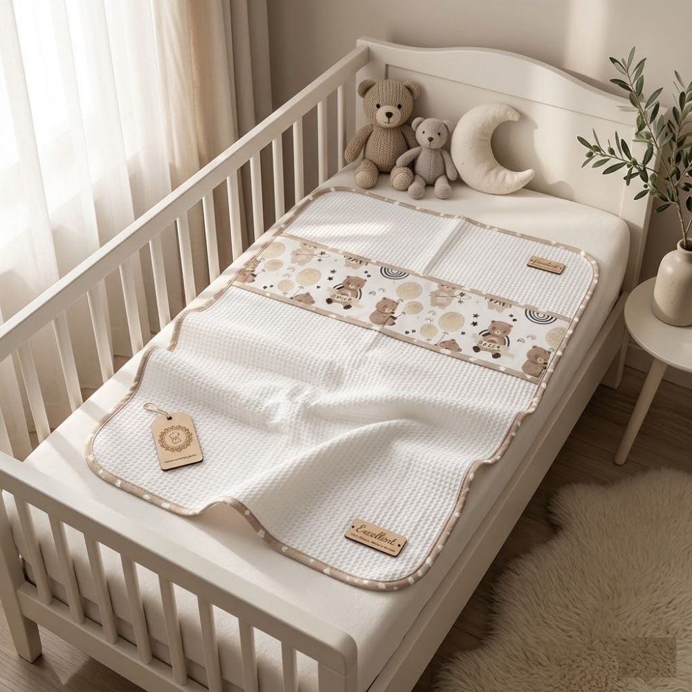 - Ποιότητα: Ύφανση πικέ (waffle texture) που επιτρέπει στο δέρμα του μωρού να αναπνέει, αποφεύγοντας την εφίδρωση.