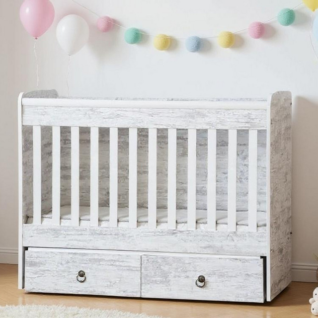 Κρεβατάκι βρεφικό σε χρώμα αντικέ με λευκό κάγκελο