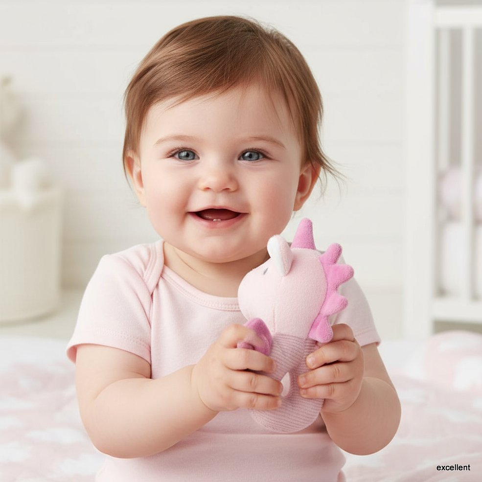 Η Μαλακή Κουδουνίστρα Lorelli σε σχήμα μαγευτικού Μονόκερου είναι το ιδανικό βρεφικό παιχνίδι για νεογέννητα, κατάλληλο από τη γέννηση (0+ μηνών). Κατασκευασμένη από μαλακό (λούτρινο) υλικό, προσφέρει άνεση και αποτρέπει τραυματισμούς, ιδανική για αγκαλιές. Διαθέτει ενσωματωμένη κουδουνίστρα που παράγει απαλό ήχο, βοηθώντας στην ανάπτυξη της ακοής. Περιλαμβάνει διαφορετικές υφές και ζώνες τσαλακώματος (crinkle zones) που ενθαρρύνουν το μωρό να εξερευνήσει μέσω της αφής με παστέλ χρώματα, κυρίως ροζ, που διεγείρουν την αίσθηση της όρασης του μικρού παιδιού.