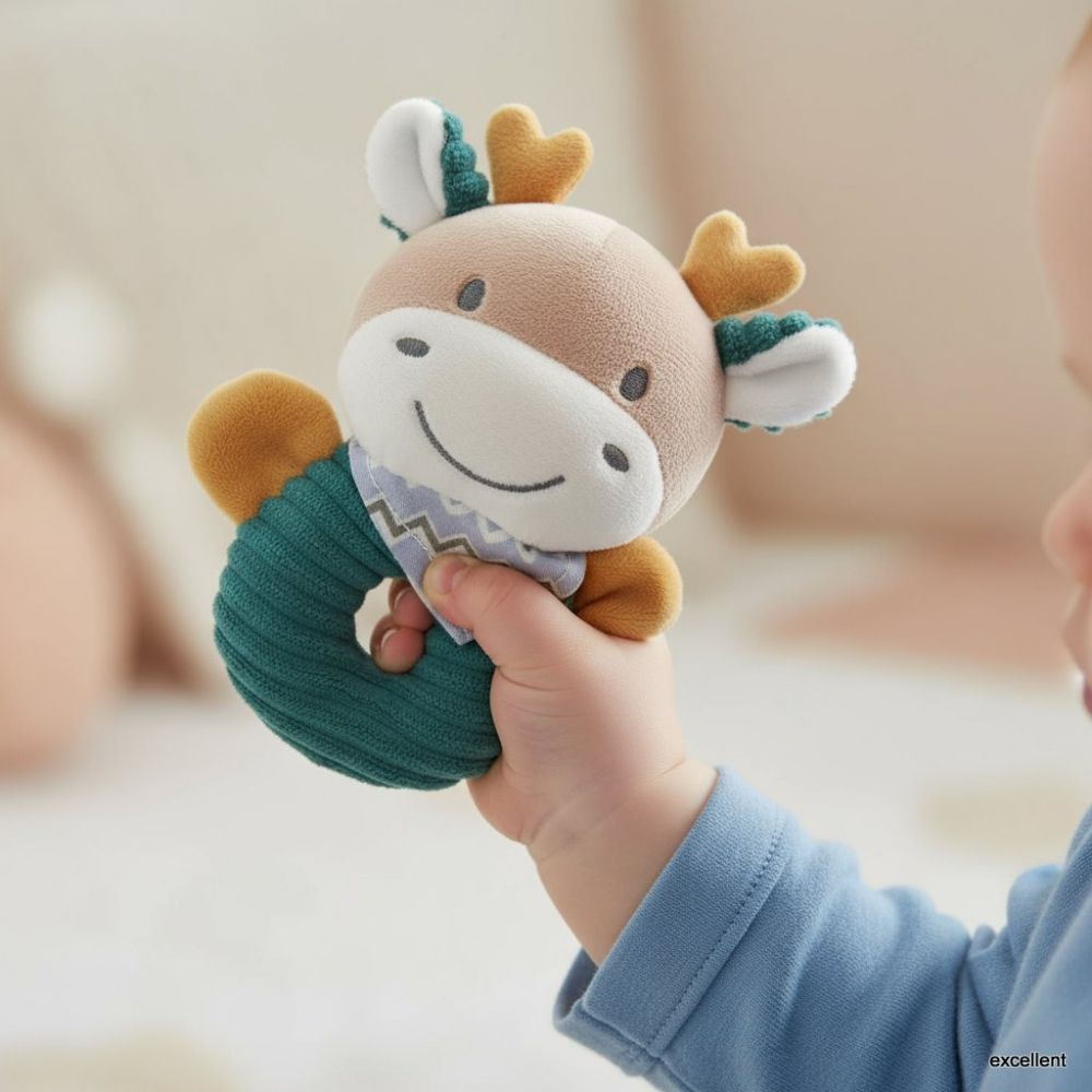 Η βελούδινη Μαλακή Κουδουνίστρα Lorelli σε σχήμα χαριτωμένου τάρανδου είναι το ιδανικό βρεφικό παιχνίδι για την ανάπτυξη των αισθήσεων από 0+ μηνών. Κατασκευασμένη από εξαιρετικά απαλό (λούτρινο) ύφασμα σε πράσινο και κίτρινο χρώμα, είναι απόλυτα ασφαλής για το ευαίσθητο βρεφικό δέρμα. Ανάπτυξη Αισθήσεων: Διαθέτει ενσωματωμένη κουδουνίστρα για την τόνωση της ακοής και διαφορετικές υφές και ζώνες τσαλακώματος (crinkle zones) για την ανάπτυξη της αφής και των λεπτών κινητικών δεξιοτήτων. Ο εργονομικός σχεδιασμός με κεντρικό δαχτυλίδι την καθιστά εύκολη στο πιάσιμο από τα μικρά χεράκια. Ένα ελαφρύ, παστέλ παιχνίδι που συνδυάζει ψυχαγωγία, παρηγοριά και εκπαιδευτική αξία για νεογέννητα.