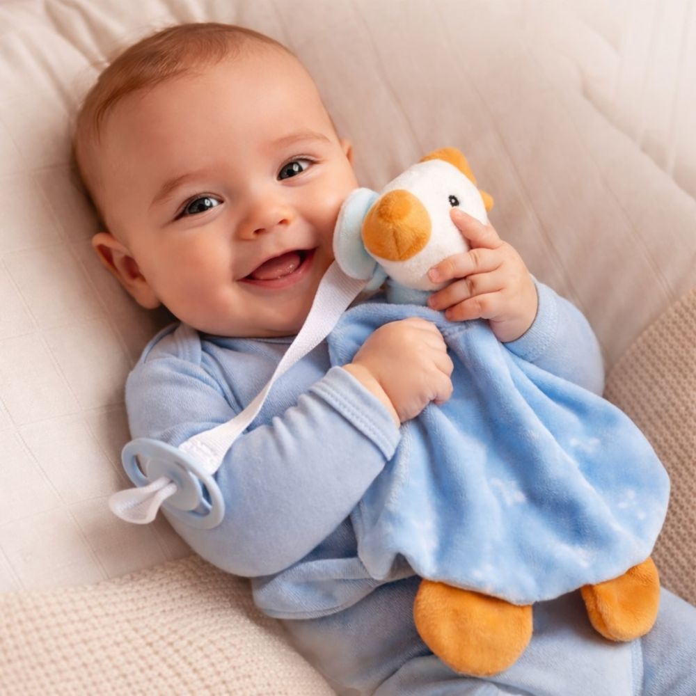 Nάνι μωρού σιέλ παπάκι με κορδέλα πιπίλας βελουτέ