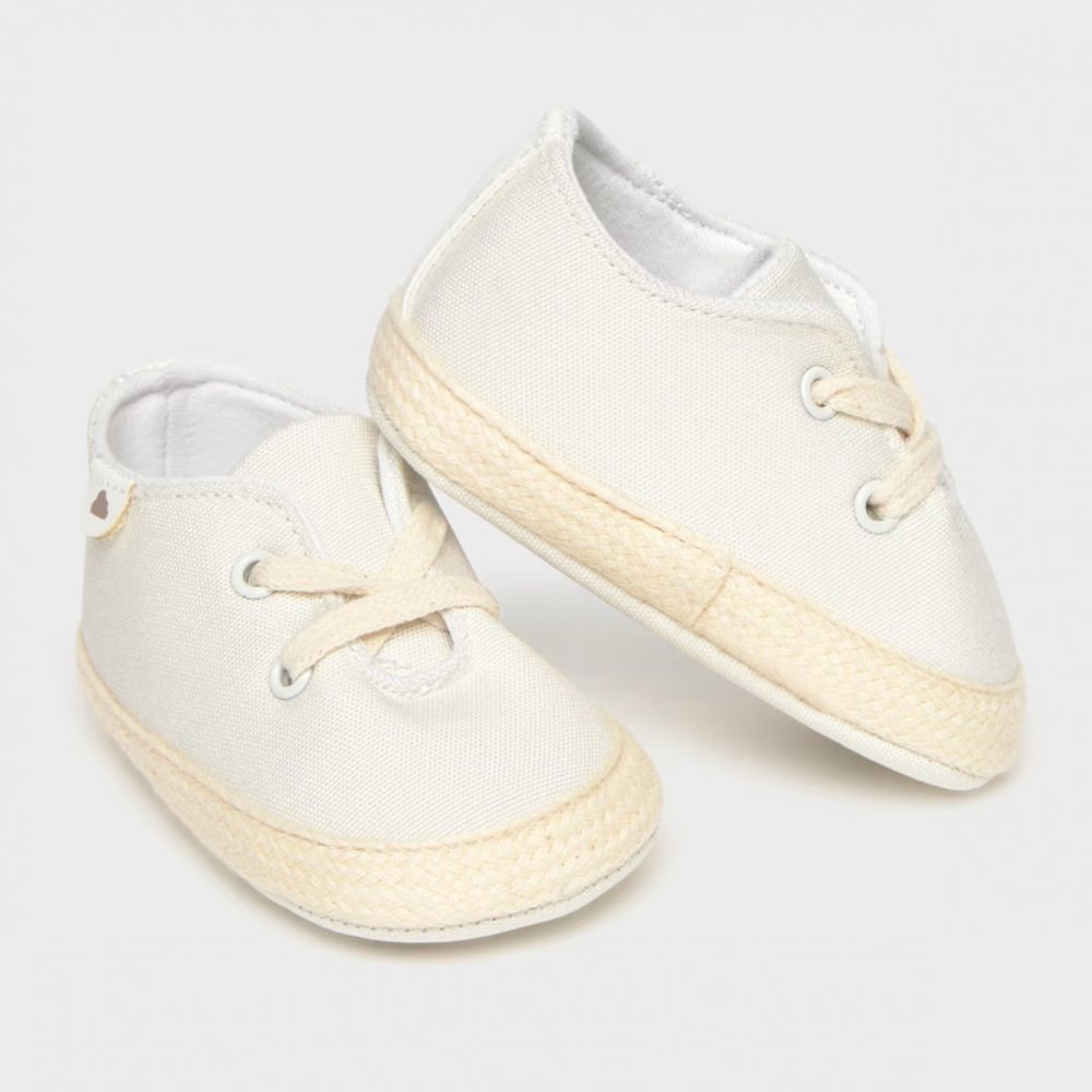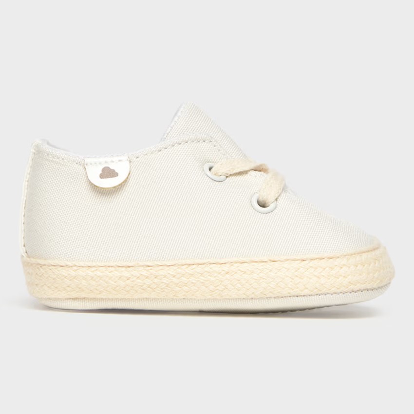Χαρίστε στυλ και άνεση στο μωρό σας με τα πάνινα παπούτσια αγκαλιάς της Mayoral σε κλασική εκρού απόχρωση. Σχεδιασμένα για τις πρώτες του καλοκαιρινές εμφανίσεις, συνδυάζουν το διαχρονικό στυλ των sneakers με την αισθητική της εσπαντρίγιας, χάρη στην πλεκτή λεπτομέρεια περιμετρικά της σόλας. Διαθέτουν απαλά κορδόνια για σωστή εφαρμογή και είναι κατασκευασμένα από δροσερό ύφασμα που επιτρέπει στο δέρμα να αναπνέει. Μια κομψή και unisex επιλογή που ταιριάζει με κάθε σύνολο, από καθημερινά φορμάκια μέχρι επίσημα βαπτιστικά ρούχα.