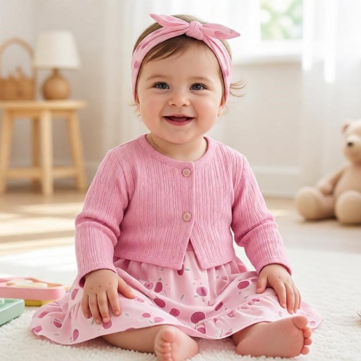Mayoral Βρεφικό Σετ Φόρεμα Ροζ με Μπολερό & Κορδέλα