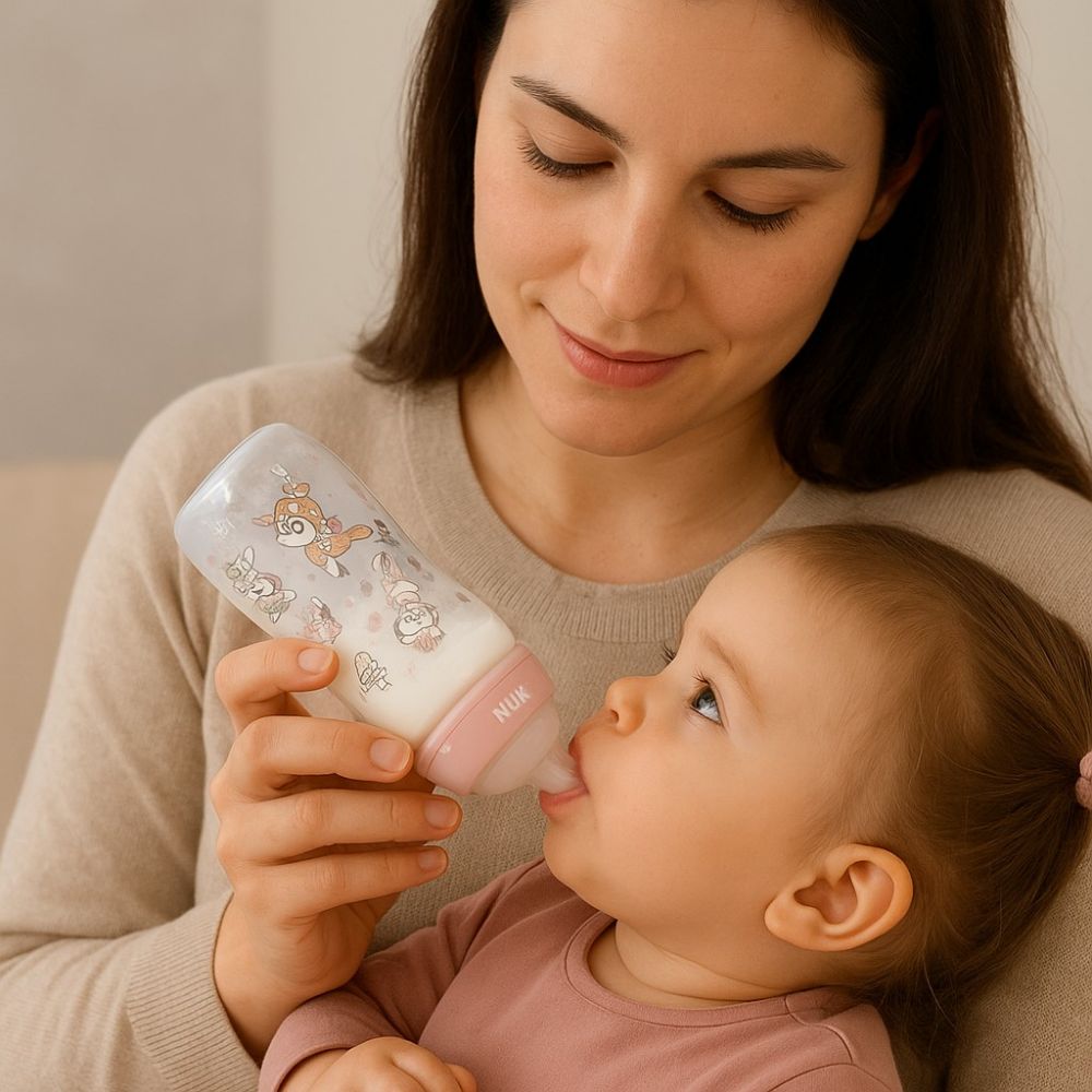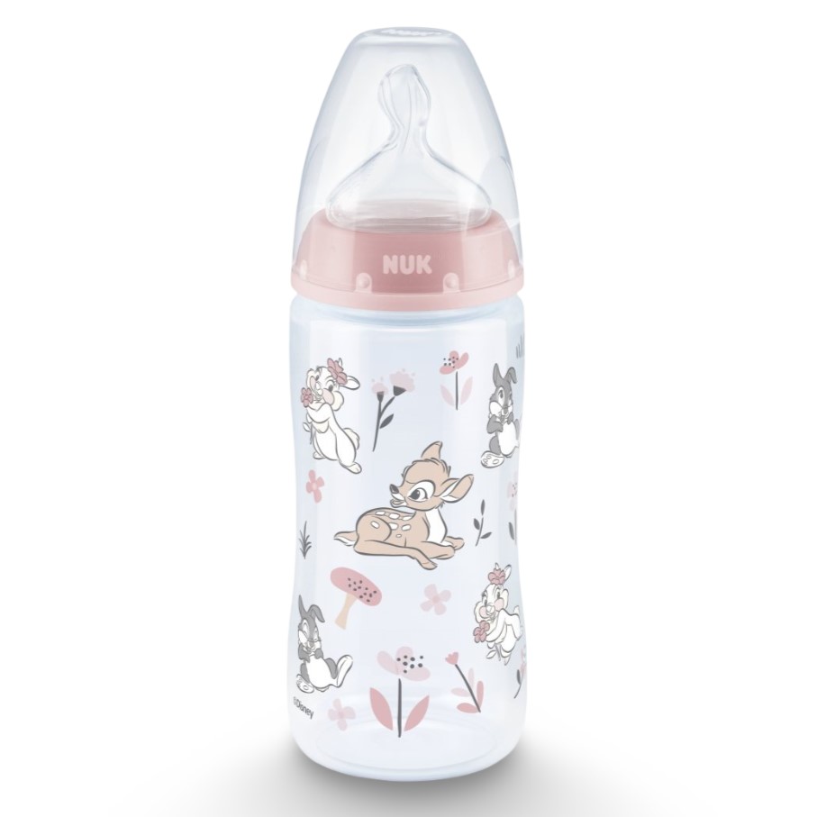 Αυτό είναι το πλαστικό μπιμπερό NUK χωρητικότητας 300ml, ιδανικό για βρέφη από 6 μηνών, καθώς περιλαμβάνει τη θηλή κατάλληλη γι' αυτή την ηλικία. Διαθέτει ένα γλυκό σχέδιο εμπνευσμένο από τη Disney και τον Bambi, με παστέλ ροζ αποχρώσεις και floral μοτίβα, καθώς και τους αγαπημένους χαρακτήρες του δάσους. Ο συνδυασμός του διάφανου μπιμπερό με το ροζ δαχτυλίδι δίνει μια απαλή, κοριτσίστικη αίσθηση. Είναι μια πρακτική και χαριτωμένη επιλογή για την καθημερινή σίτιση του μωρού σας.