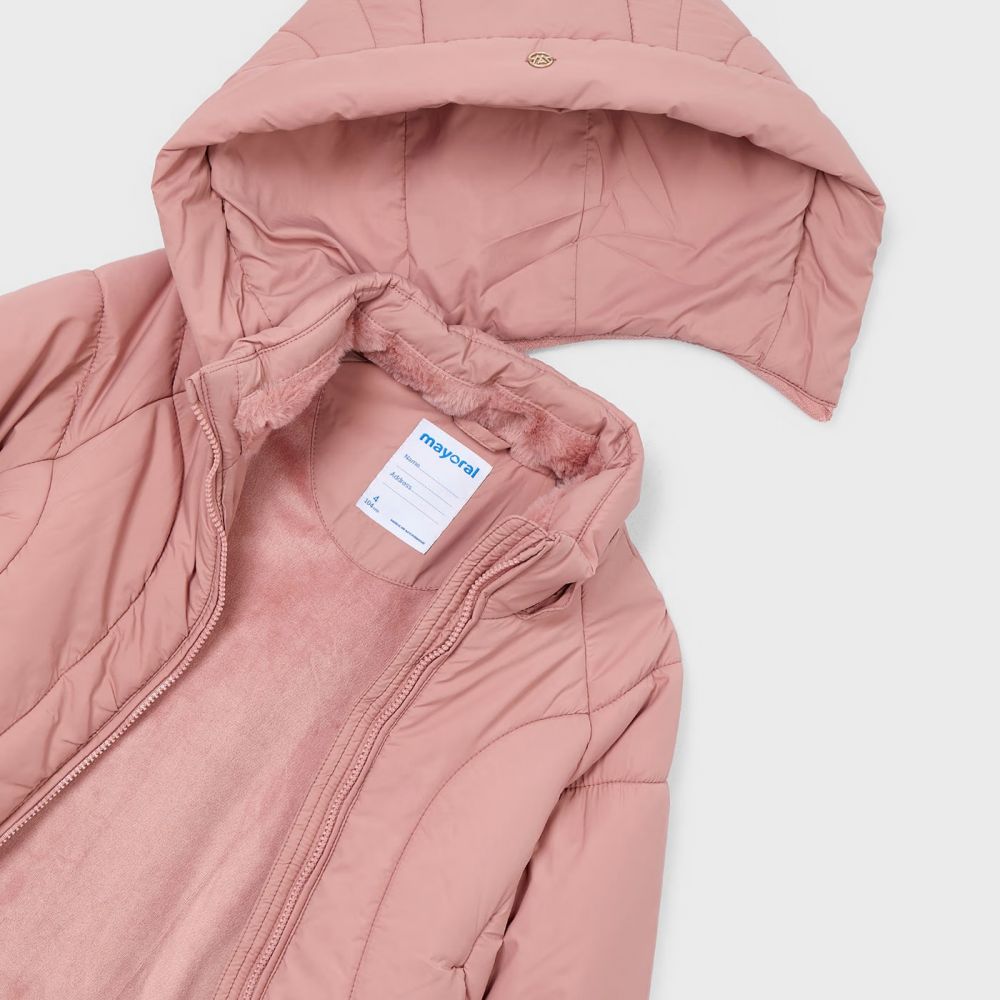 Κοριτσίστικο μπουφάν σε εντυπωσιακό ροζ μήλο χρώμα, η τέλεια επιλογή για τις κρύες μέρες. Η καπιτονέ υφή του δημιουργεί ένα κομψό σχέδιο, ενώ η ζεστή επένδυση προσφέρει άνεση και προστασία από το κρύο. Με πρακτική κουκούλα και ψηλό γιακά, παρέχει επιπλέον κάλυψη. Το φερμουάρ σε όλο το μήκος και η αφαιρούμενη κουκούλα διευκολύνει το ντύσιμο, καθιστώντας το ιδανικό για καθημερινή χρήση.