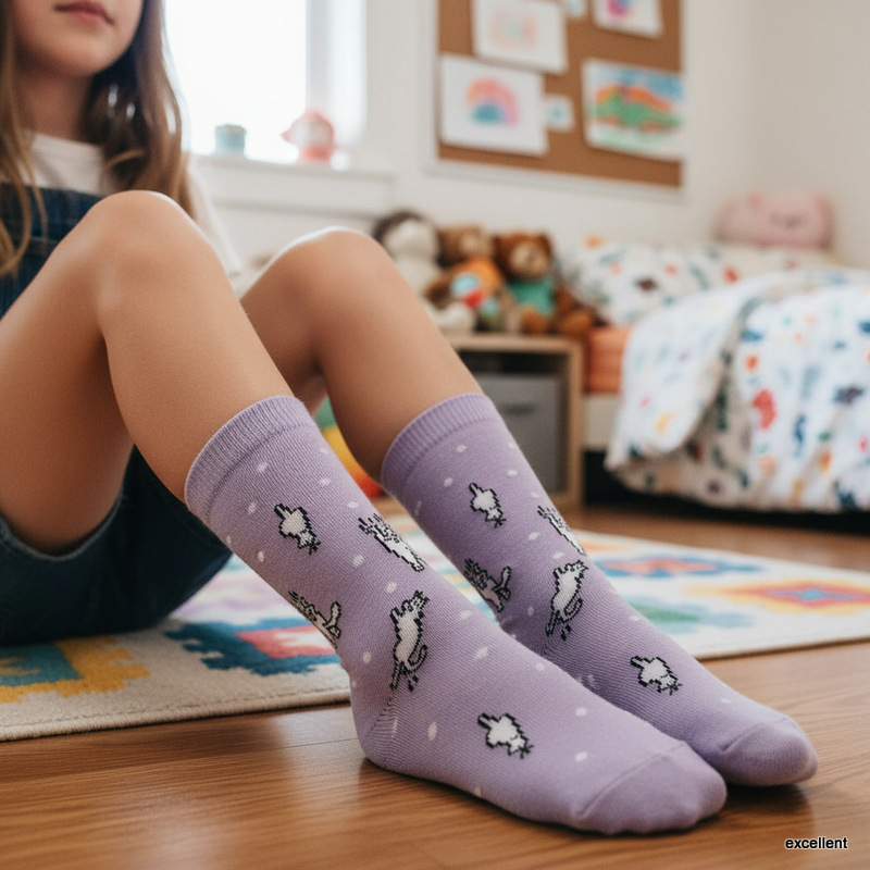 Παιδικά καλτσάκια για κορίτσια ελληνικής παραγωγής, με 80% αγνό βαμβάκι για μέγιστη άνεση και απαλή αίσθηση. Αυτά τα χαριτωμένα παιδικά καλτσάκια σε λιλά χρώμα διαθέτουν μοντέρνο σχέδιο με pixel-art γατάκια που χοροπηδούν και μικρά λευκά πουά. Η σύνθεση με 17% πολυαμίδιο και 3% ελαστίνη εξασφαλίζει ανθεκτικότητα, ελαστικότητα και άψογη εφαρμογή, παραμένοντας στη θέση τους όλη μέρα. Είναι ιδανικά για καθημερινή χρήση, προσφέροντας ζεστασιά και στυλ στα πόδια της μικρής σας. Ένα must-have αξεσουάρ με παιχνιδιάρικο design.