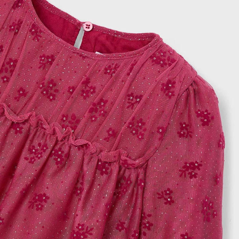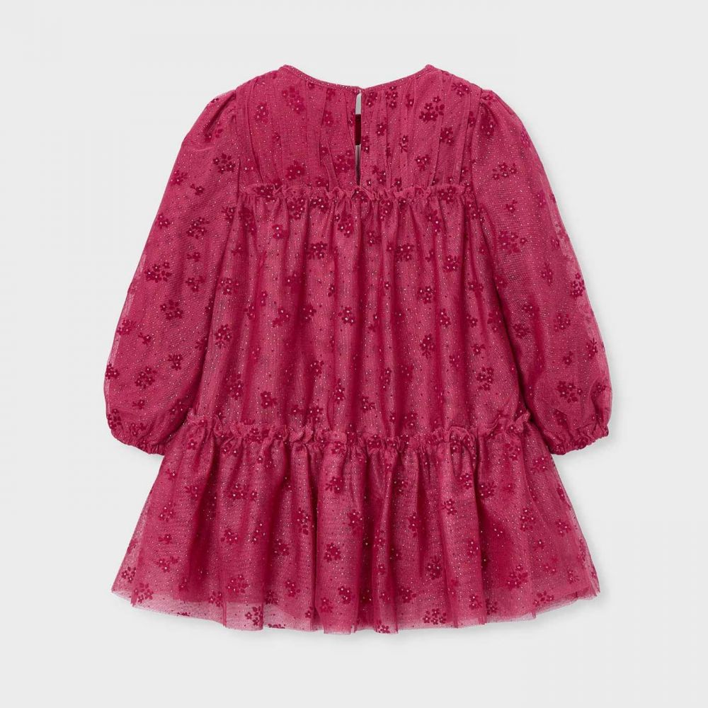 Παιδικό Φόρεμα Ύφασμα & Τούλι Κερασί