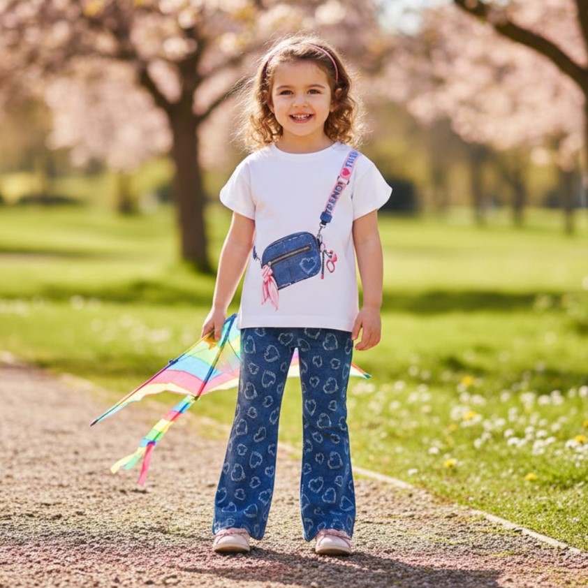 - Λεπτομέρειες: Χαριτωμένο σχέδιο με καρδιές σε όλη την επιφάνεια του παντελονιού που δίνει μια παιχνιδιάρικη νότα.