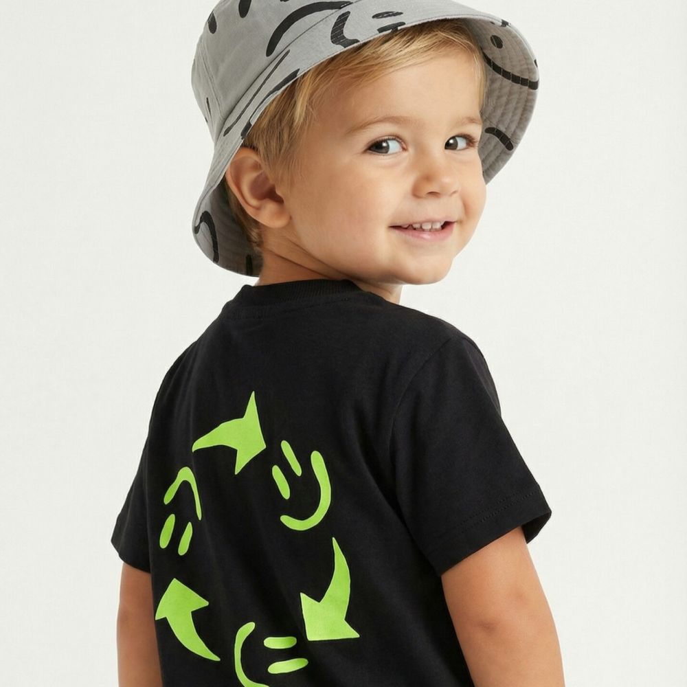 - T-shirt: Neon green οικολογικό σήμα (cycle smiley).