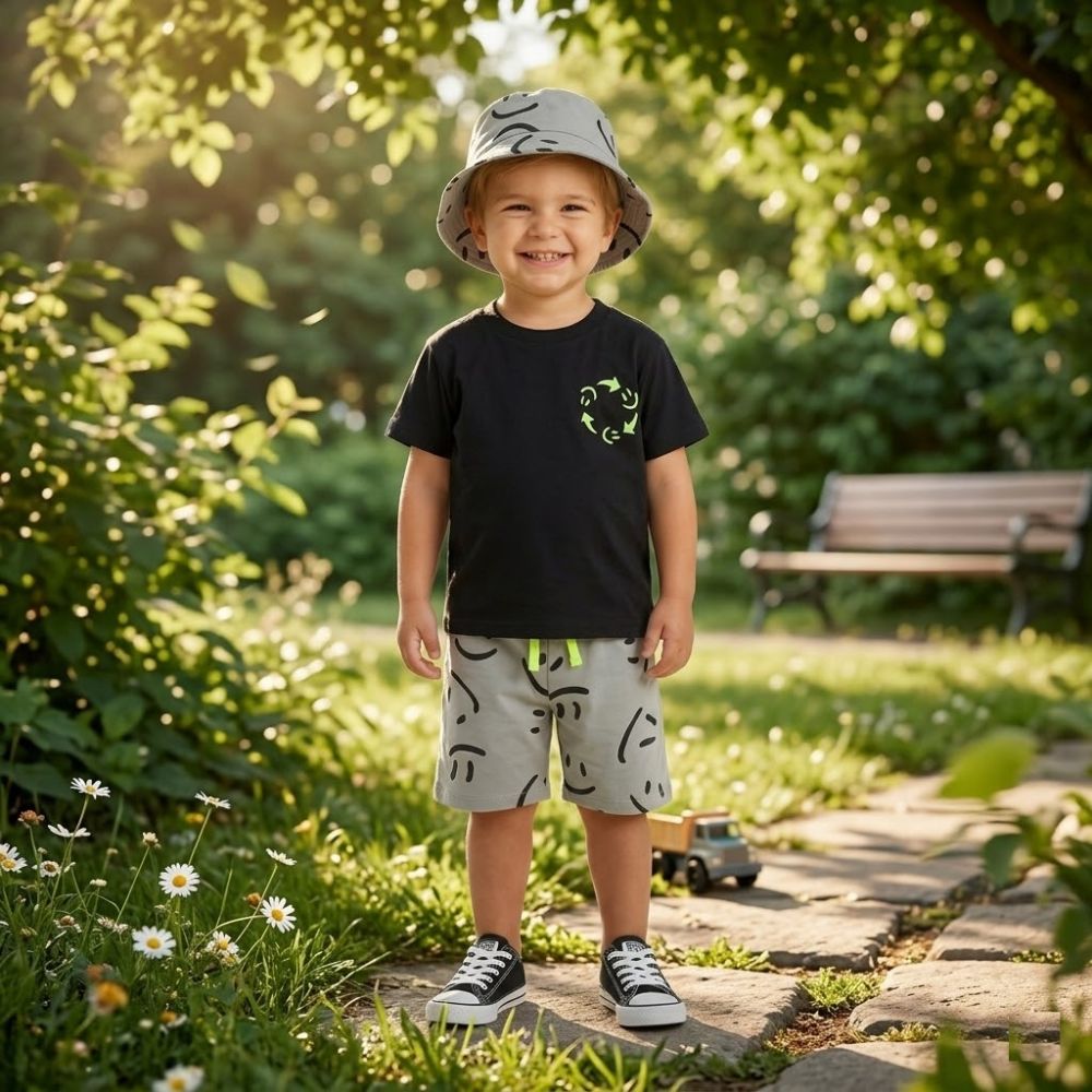 - Σετ: 3 τεμαχίων T-shirt Σορτς Καπέλο.