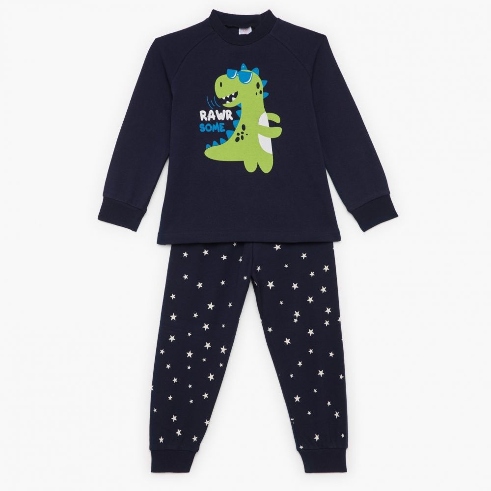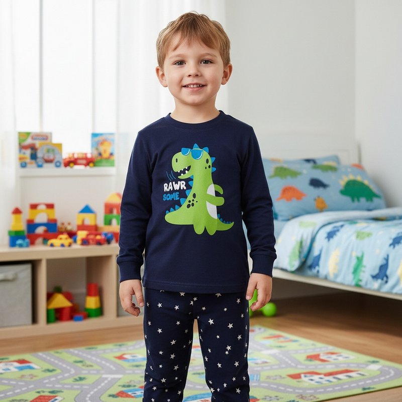 Οι παιδικές πιτζάμες baby dino, κατασκευασμένες από 100% υψηλής ποιότητας βαμβάκι. Αυτή η πιτζάμα δεν είναι απλά ένα ρούχο ύπνου, αλλά και ένα στυλάτο ρούχο για τις καθημερινές περιπέτειες του παιδιού σας.Η πιτζάμα μας είναι κατασκευασμένη από 100% πενιέ βαμβάκι που επιτρέπει το σώμα του παιδιού να αναπνέει, προσφέροντας άνεση και ελαστικότητα. Επιπλέον, αντέχει στο πλύσιμο, διατηρώντας τη φόρμα και την ποιότητά της ανέπαφη