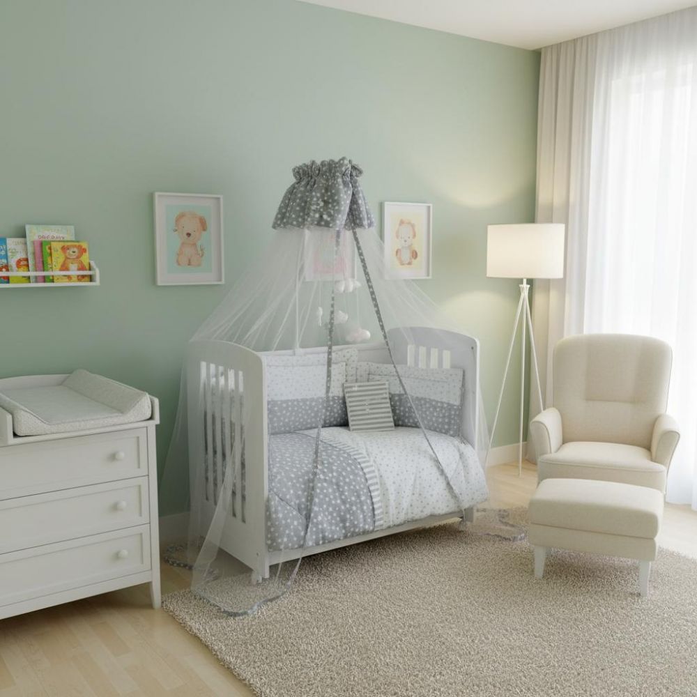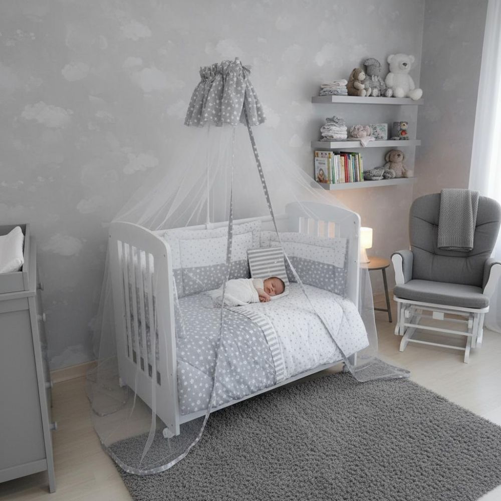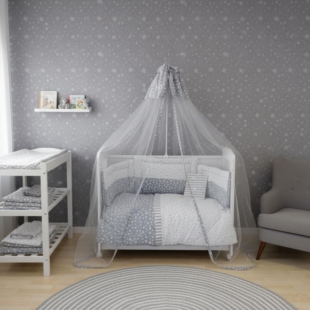 Σετ Κούνιας Μωρού 6 Τεμαχίων Αστεράκια Γκρι