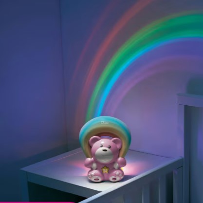 Ο ιδανικός σύντροφος για γλυκά όνειρα! Ο Προβολέας Ουράνιο Τόξο Αρκουδάκι Chicco είναι κάτι παραπάνω από ένα απλό φωτιστικό νυκτός. Με τον χαριτωμένο του σχεδιασμό σε απαλό ροζ χρώμα, αυτό το παιχνίδι βοηθά το μωρό σας να χαλαρώσει και να αποκοιμηθεί με έναν μοναδικό τρόπο.Μαγευτική Προβολή: Δημιουργεί ένα μεγάλο, πολύχρωμο ουράνιο τόξο στον τοίχο ή στο ταβάνι του παιδικού δωματίου, δημιουργώντας μια ονειρική ατμόσφαιρα.Χαλαρωτικές Μελωδίες: Περιλαμβάνει 30 λεπτά κλασικής μουσικής (Mozart, Beethoven) και New Age μελωδιών για να ηρεμήσει το βρέφος.Λειτουργία Φωτάκι Νυκτός: Χρησιμοποιείται και ως απλό φωτιστικό με απαλό φως όταν το μωρό μεγαλώσει.