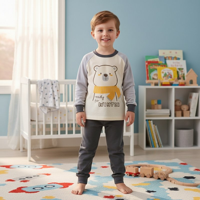 Χειμωνιάτικες πιτζάμες για τα παιδιά σας! Αυτή η υπέροχη Πυζάμα Παιδική Winter Teddy grey είναι φτιαγμένη από 100% βαμβακερό, ελαστικό ύφασμα, εξασφαλίζοντας άνεση και ζεστασιά ακόμα και στις πιο κρύες νύχτες. Το σετ περιλαμβάνει ένα μπλουζάκι με εντυπωσιακή στάμπα και ένα παντελονάκι φόρμας που συνδυάζει στυλ με λειτουργικότητα. Η υφή του πενιέ βαμβακιού είναι απαλή και φιλική προς το δέρμα, ενώ η ελαστικότητα του υφάσματος επιτρέπει ελευθερία κινήσεων, κάνοντάς την ιδανική για κάθε δραστηριότητα του παιδιού, από τον ύπνο μέχρι το παιχνίδι. Επιλέξτε αυτή την πιτζάμα για να προσφέρετε στο παιδί σας άνεση και ζεστασιά, με στυλ που θα του αρέσει!