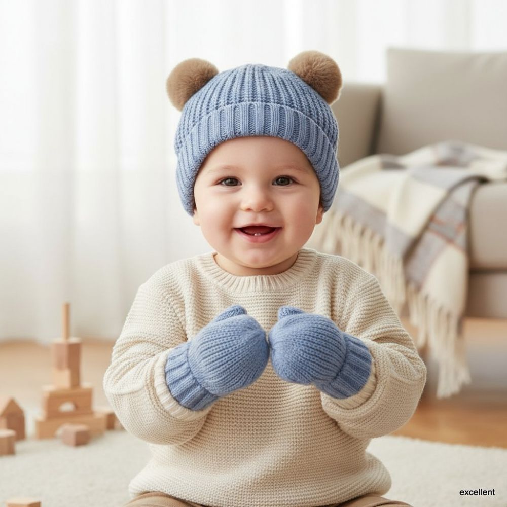 Βρεφικό Σκουφάκι Με Γαντάκια Μπλε