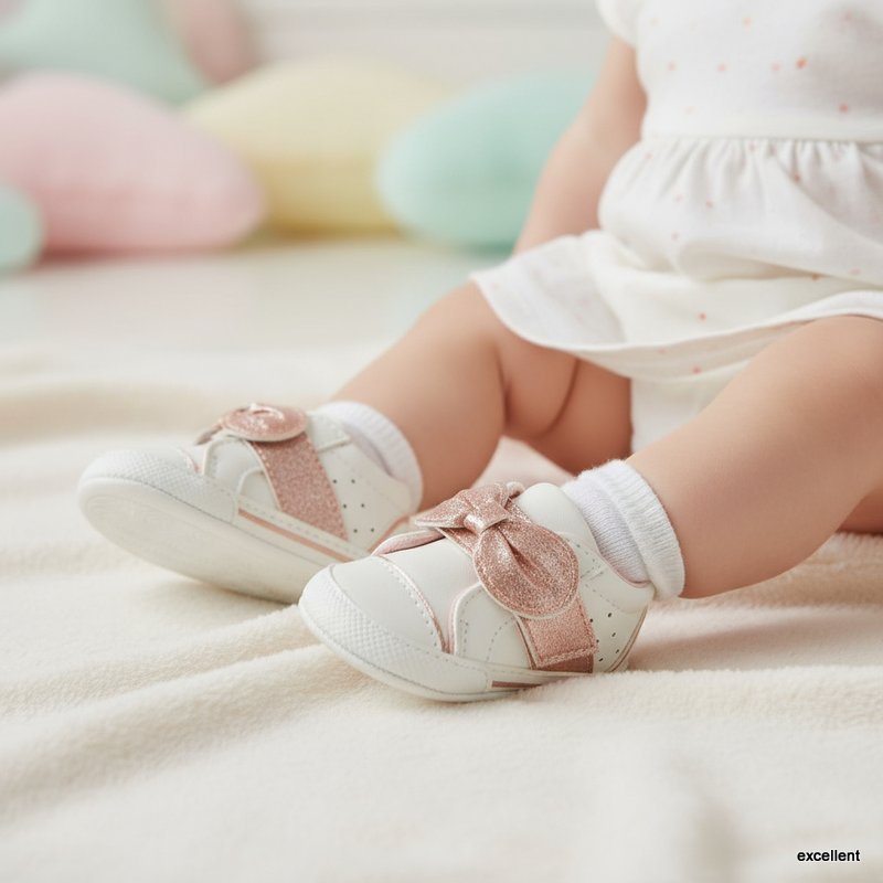 Παπουτσάκια Βρεφικά Λευκά Ροζ