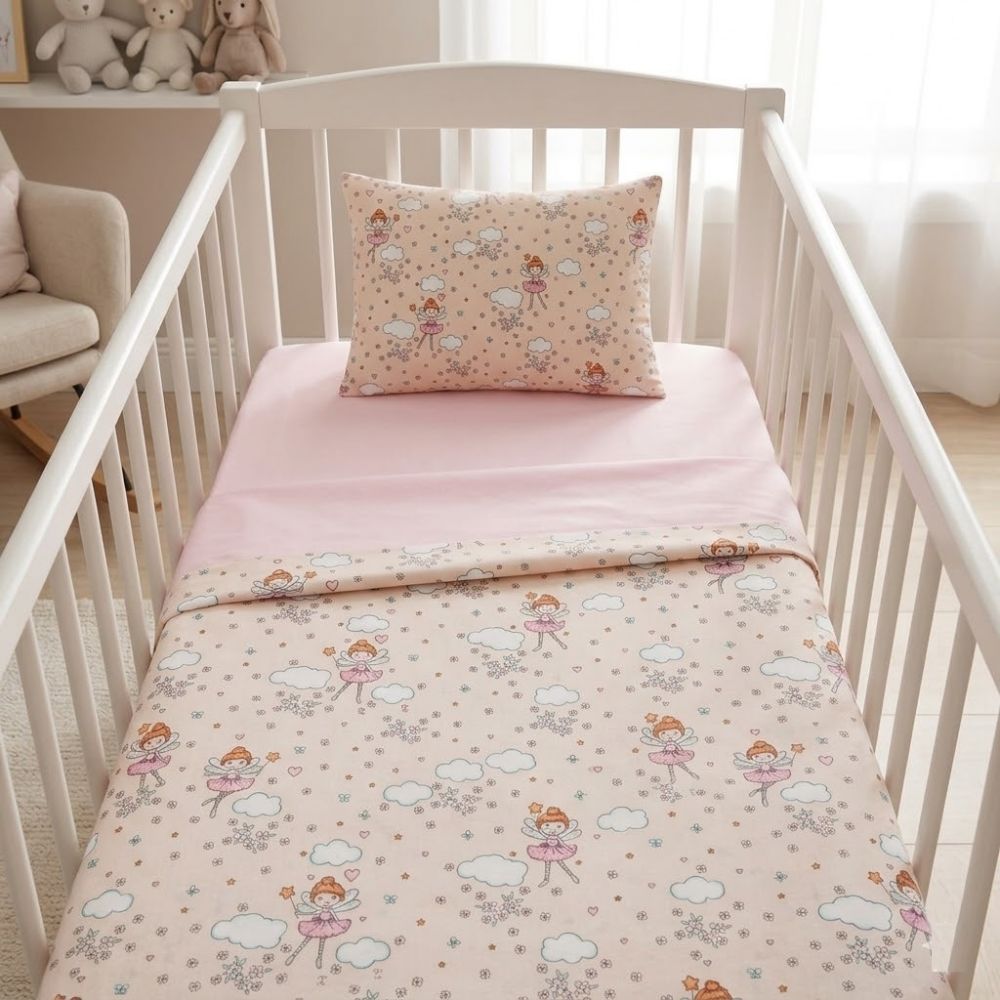 Βρεφικά σεντόνια κούνιας με ροζ νεράιδες και κατωσέντονο με λάστιχο
