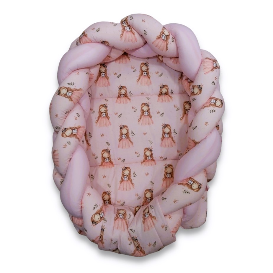 Βρεφική Φωλιά Μωρού Πλεξούδα Ροζ με Τύπωμα Μικρή Πριγκίπισσα