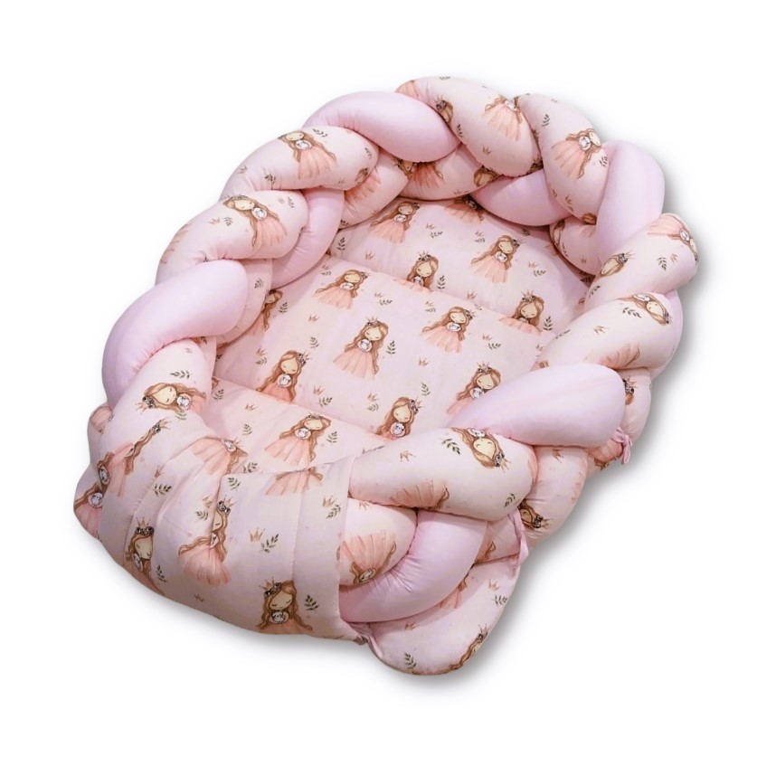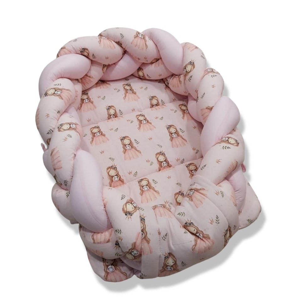 Βρεφική φωλιά μωρού πλεξούδα σε απαλό ροζ χρώμα με τύπωμα «Μικρή Πριγκίπισσα», σχεδιασμένη για να προσφέρει ασφάλεια, άνεση και αίσθηση θαλπωρής στο νεογέννητο και το βρέφος. Η πλεξούδα περιμετρικά λειτουργεί ως προστατευτικό, αγκαλιάζοντας απαλά το μωρό και συμβάλλοντας σε έναν ήρεμο και ασφαλή ύπνο. Κατασκευασμένη από υψηλής ποιότητας 100% cotton, μαλακό και υποαλλεργικό υφάσμα, είναι ιδανική για χρήση στο λίκνο, την κούνια, το καρότσι ή ως φωλιά ξεκούρασης μέσα στο σπίτι. Το ρομαντικό σχέδιο με μικρές πριγκίπισσες προσθέτει αισθητική αξία και ταιριάζει απόλυτα σε κοριτσίστικο βρεφικό δωμάτιο.