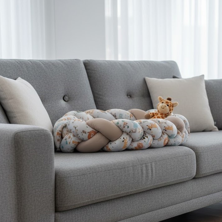 - Πολυχρηστικός Σχεδιασμός: Η πλεξούδα είναι αποσπώμενη, επιτρέποντάς σας να τη χρησιμοποιήσετε αργότερα ως προστατευτικό (πάντα) στην κούνια ή ως διακοσμητικό μαξιλάρι.