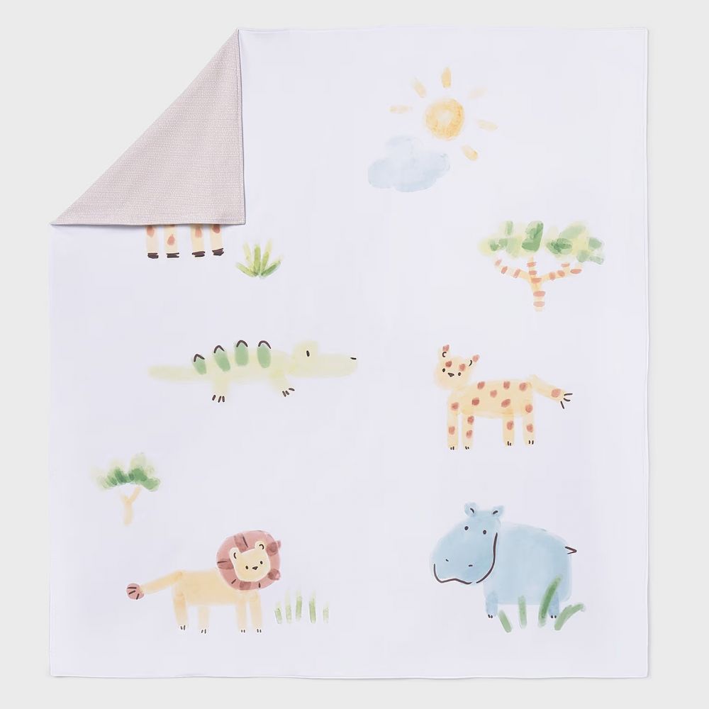 - Μοναδικό Design: Διαθέτει πανέμορφα watercolor σχέδια με τα ζωάκια της ζούγκλας (λιοντάρι, ιπποπόταμο, καμηλοπάρδαλη) σε απαλούς τόνους, ιδανικά για αγόρια και κορίτσια.