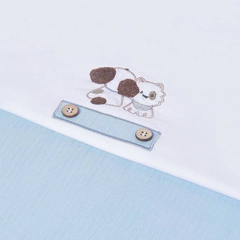 - Triple-Pattern Σχεδιασμός: Διαθέτει ένα υπέροχο εκρού φόντο με κεντητή παράσταση από δύο αρκουδάκια στο κέντρο, ενώ το κάτω μέρος και η γωνία είναι διακοσμημένα με διακριτικό print από αρκουδάκια σε αεροπλάνα και μπαλόνια.