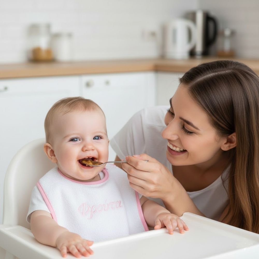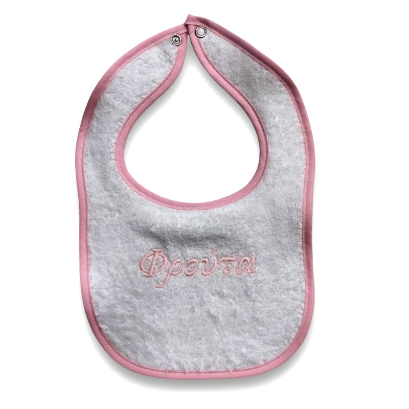 - Κλείσιμο: Διαθέτει ασφαλές κλείσιμο με κουμπάκι (μεταλλικό κλιπ PRYM Γερμανίας βρεφικών ρούχων), διασφαλίζοντας τη σταθερότητά της καθ' όλη τη διάρκεια του γεύματος.
