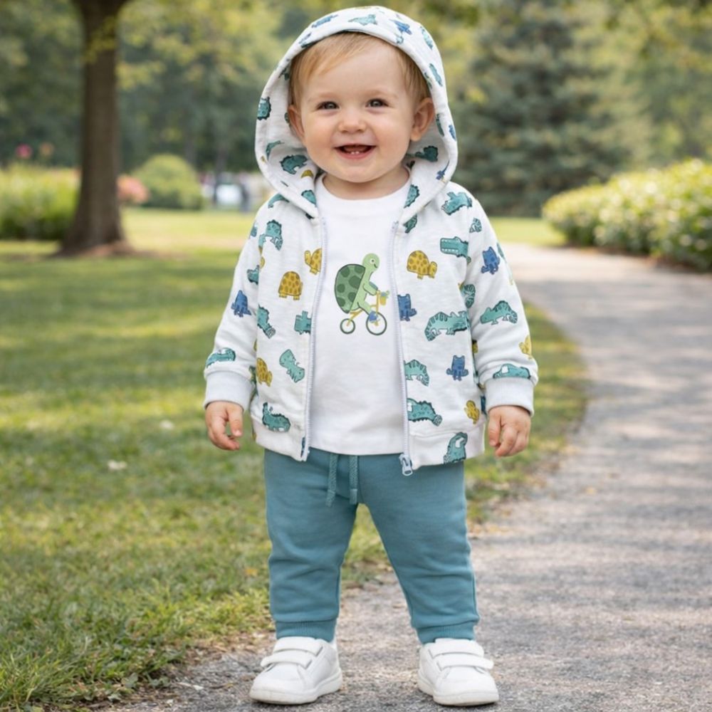 - Ζακέτα με κουκούλα: Με φερμουάρ και διασκεδαστικά τυπωμένα σχέδια (χελώνες, βατραχάκια).