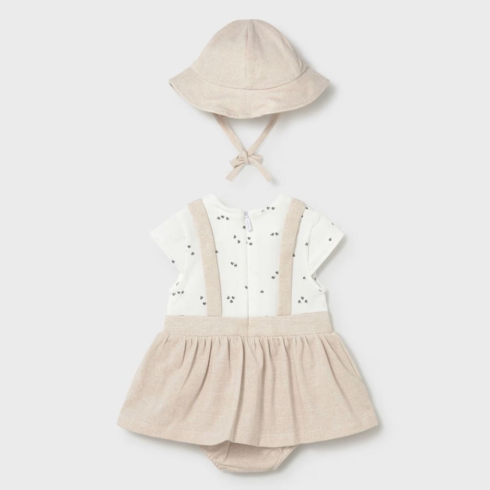 Αξεσουάρ: Συνοδεύεται από ασορτί λινό καπέλο με δέσιμο, για προστασία από τον ήλιο με στυλ.