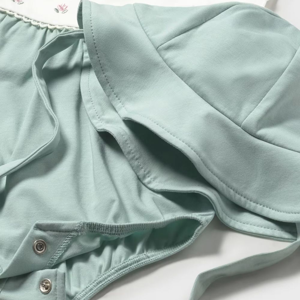 - Σχεδιασμός Two-tone: Λευκό το πάνω μέρος με λεπτό κέντημα από λουλούδια και απαλό πράσινο (mint) το κάτω μέρος.
