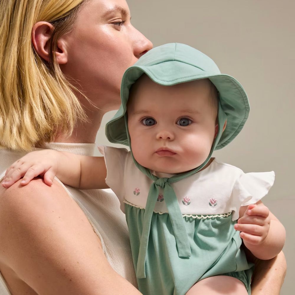 - Ασορτί Αξεσουάρ: Περιλαμβάνει ασορτί καπέλο ηλίου με δέσιμο, για απόλυτη προστασία και στυλ.