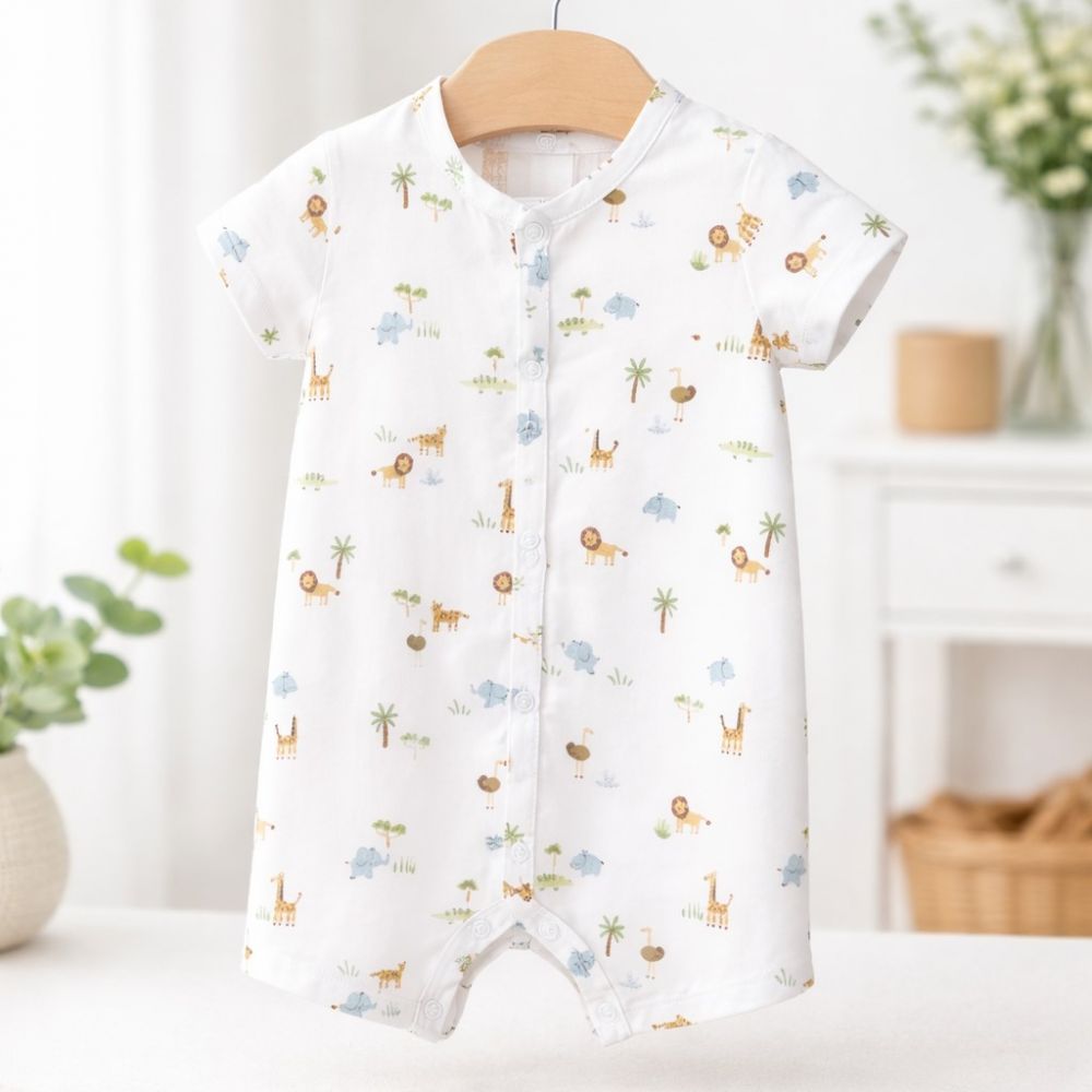 - Minimal & Chic Σχεδιασμός: Λευκή βάση με διάσπαρτα, διακριτικά τυπώματα από καμηλοπαρδάλεις, λιοντάρια και ελέφαντες σε γήινες αποχρώσεις.
